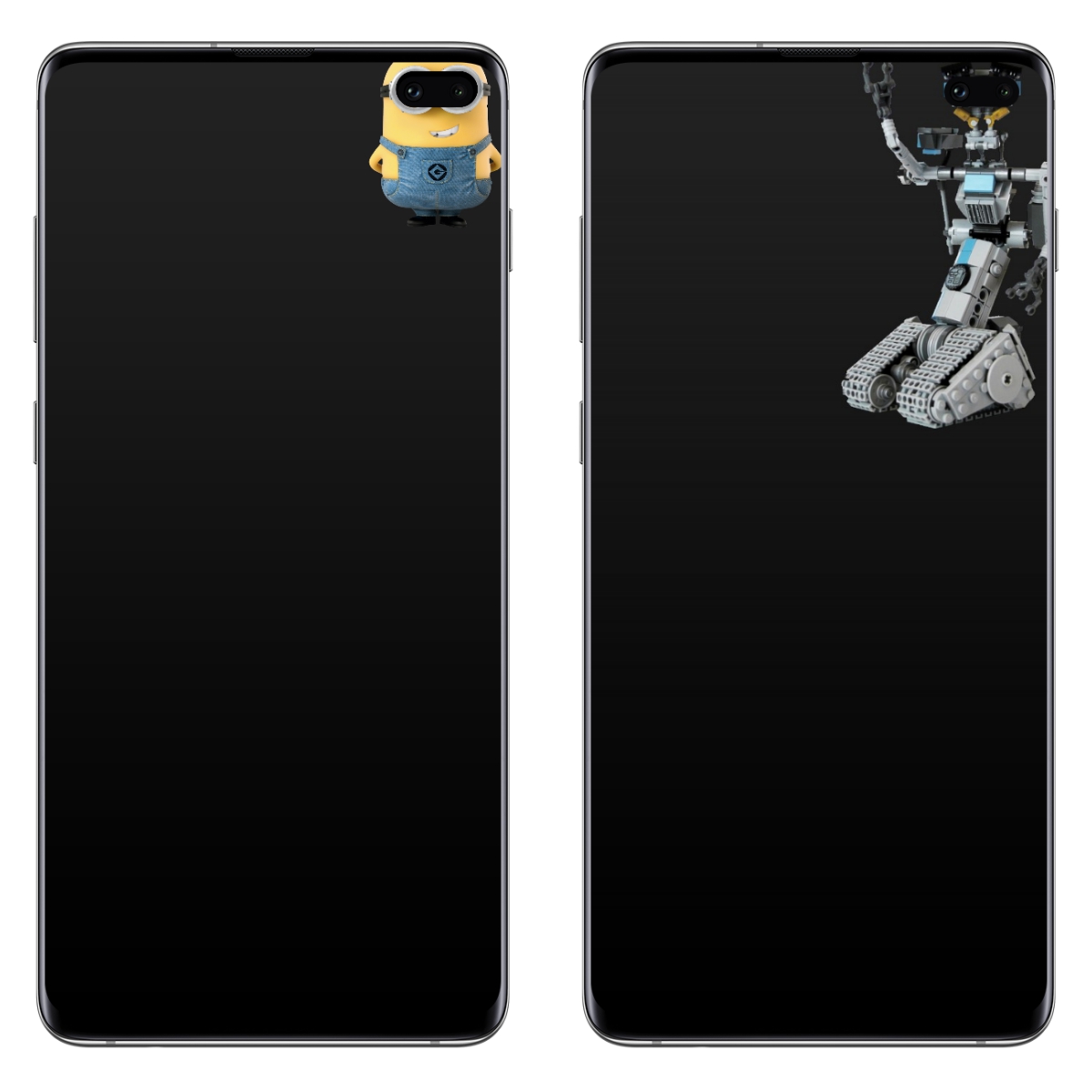至於這個在右上角挖洞的鏡頭,網路上就有神人立刻想出了一些有趣的桌布,像是毫無違和感的小小兵,或者機器人等,大家如果也想使用的話,只要在 Google 搜尋 Samsung Galaxy S10 桌布(或全英文 Samsung Galaxy S10 Wallpaper),就會有一堆囉。