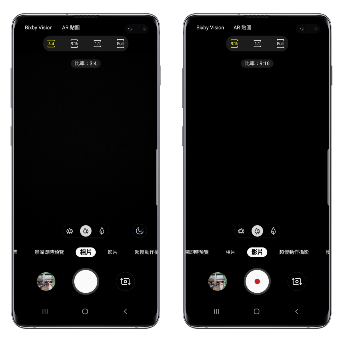 照片比例分別有 3:4、9:16、1:1 以及全畫面。