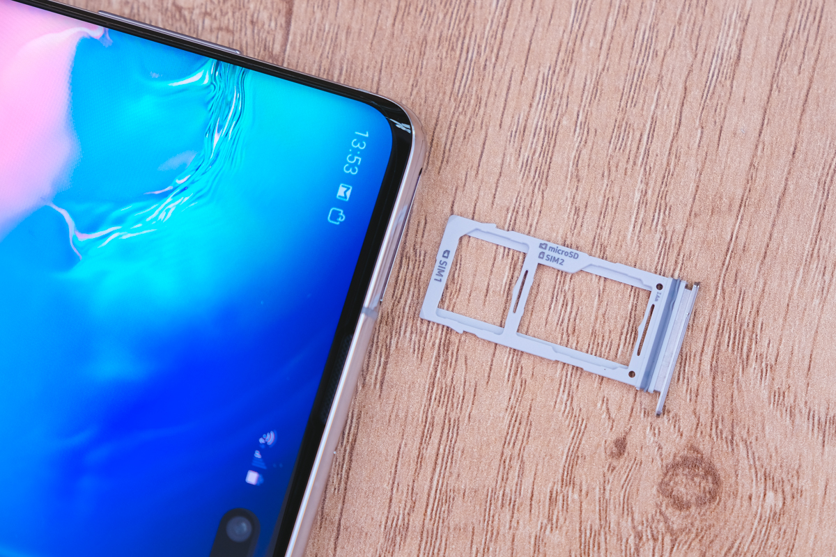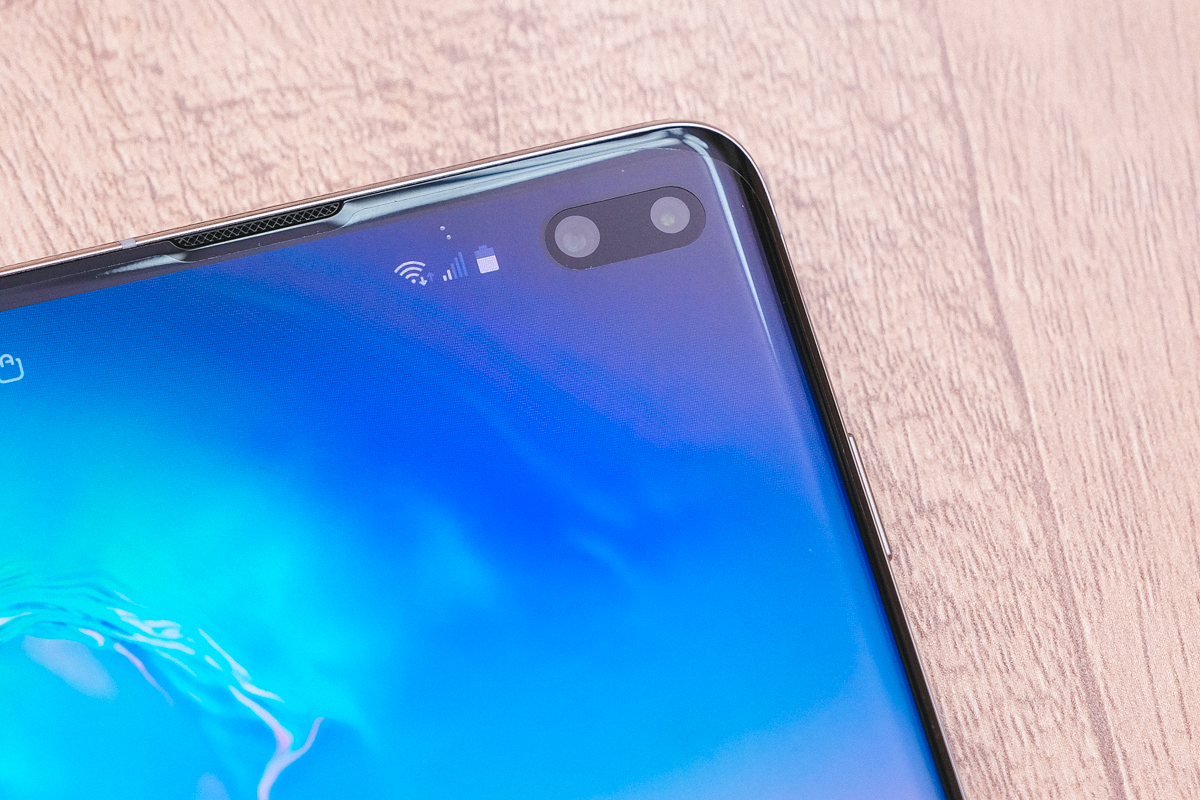 這次前置鏡頭直接就在螢幕右上角開了洞,這做法已經相當的極致了,而 S10 及 S10e 更只有一個小圓孔。