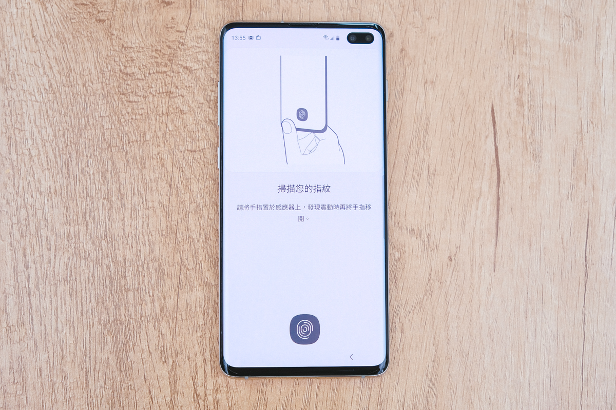 在 Galaxy S10+ 上搭載的是螢幕下指紋辨識,不過和其他品牌的螢幕下指紋辨識技術是不同的,S10+ 是首款採用「超聲波指紋辨識技術」的智慧型手機(S10 同樣具備),可以更精準更快的辨識解鎖手機,位置就在螢幕下方約 2 公分處。