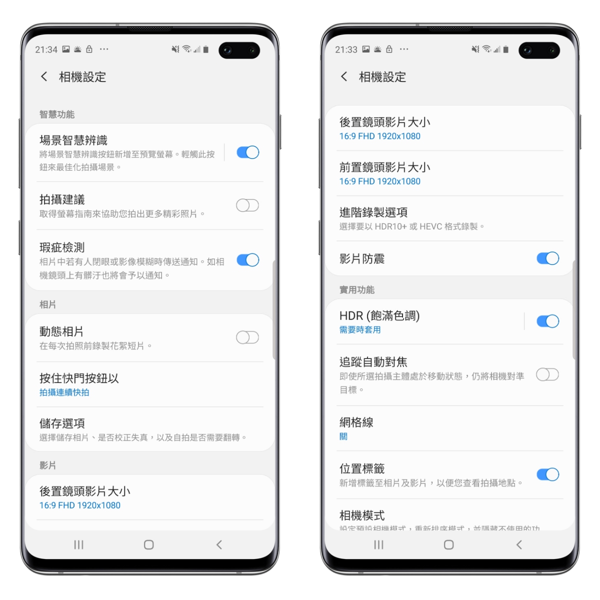 而這 HDR10+ 錄製功能可以讓畫面的對比及色彩有更好的表現,當然錄製之後也必須在支援 HDR10+ 的螢幕上播放才能展現出效果,當然,S10+ 也為此加入了支援 HDR10+ 的螢幕,阿湯自己家中的電視也是支援 HDR10+ 的三星電視,所以這項功能對我來說很不錯,我在家可以投到電視上直接看更有感。