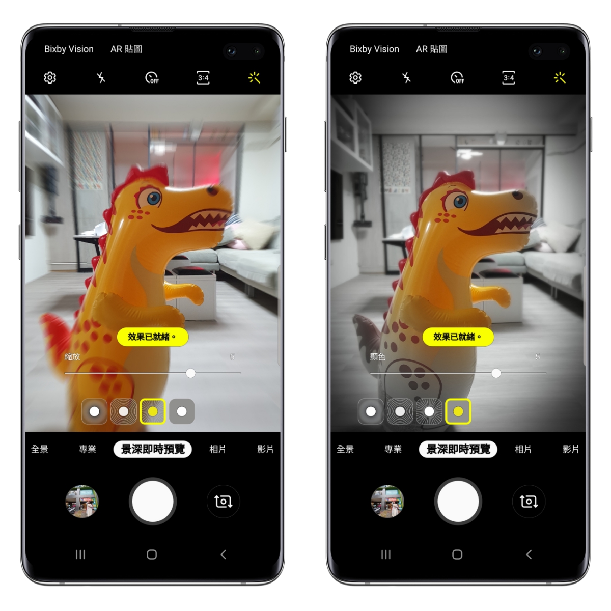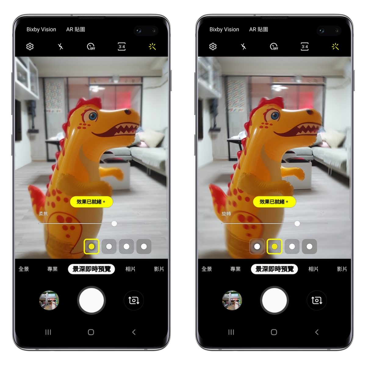 第一個模式是預設的一般景深(柔焦)、第二個則是讓背景的景深呈現圓形旋轉。