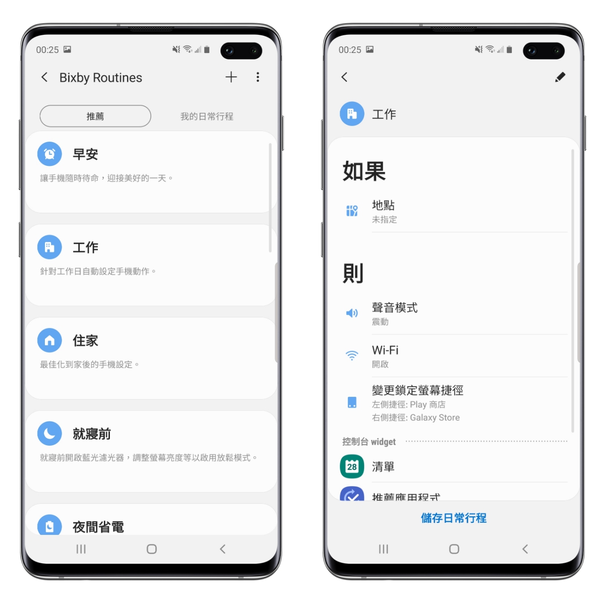 在 Bixby Routines 設定中,可以設定多組自己生活中常用的模式,快速的將手機切換成你需要的狀態,也能針對地點自動啟用。