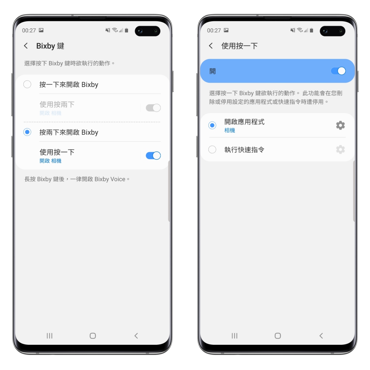 在設定中,你可以選擇 Bixby 鍵的使用方式,如果 Bixby 不常用,可以選擇按二下才開啟 Bixby,而按一下是開啟你自訂的應用程式。