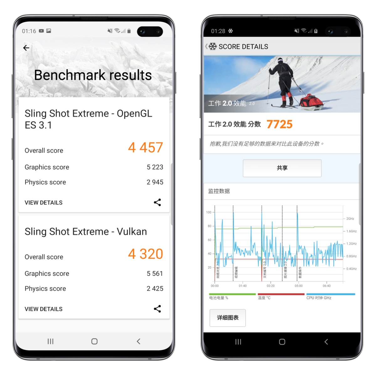 圖形效能的部份,透過 3DMark 測試分別獲得 4,457 以及 4,320 的分數,基本上旗艦級手機的效能沒什麼好挑剔的,不論做什麼都只有順暢可言。