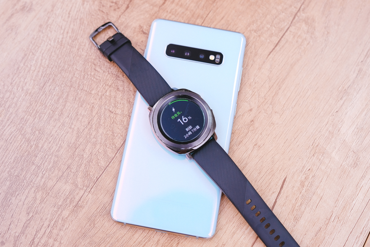 Galaxy S10 全系列皆支援「雙向」無線充電,只要在設定中打開 Wireless PowerShare 功能,立刻就可以為其他支援無線充的設備進行充電,像阿湯自己就有 Samsung Gear Sport 智慧手錶,由於可以 5~6 天才充一次電,常常都會用到沒電忘記要充電,現在出門時如果發現沒電就用 S10+ 充一下電,就足夠我一整天的使用了。