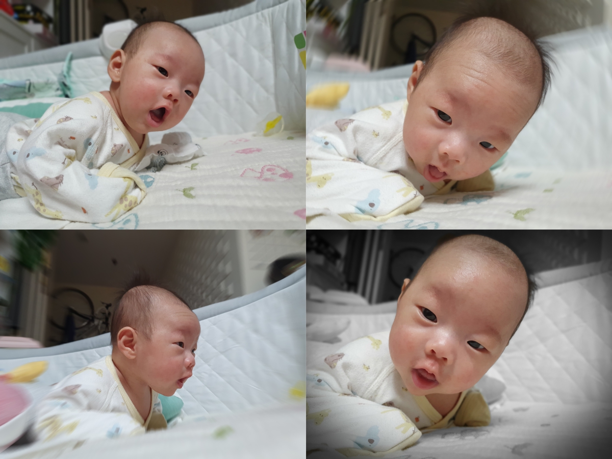 就讓我兒湯包再為大家展示一次這四種景深模式吧!最近他正在猛抬頭的階段啊。