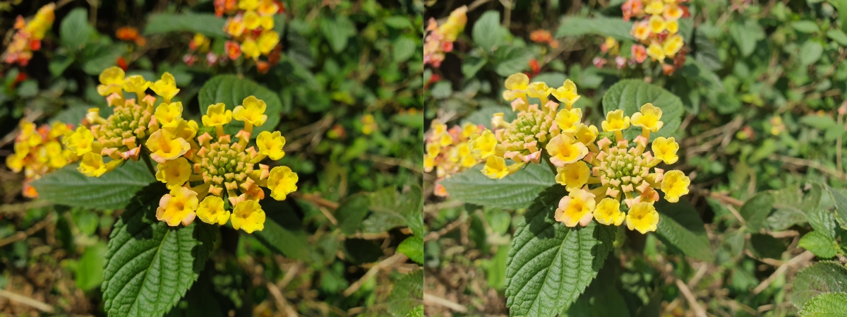 像花卉有沒有開 AI 差的更明顯,左圖是有開 AI 所拍攝,右圖關閉。