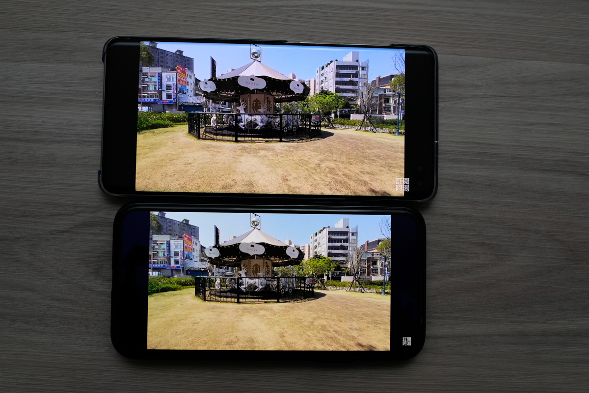 阿湯也拍一下上述影片在有支援 HDR10+ 的 Galaxy S10+ 播放以及不支援的 iPhone Xs 上播放的差異給大家看,光是顏色飽和、畫面銳利度都差很多。
