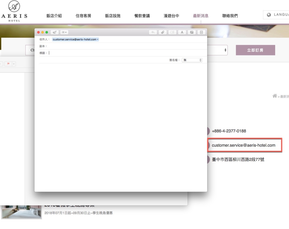 接下來不需要做任何設定,當你點擊任何網頁上的 mailto 連結時,會直接跳出視窗讓你可以複製 Email,就不用每次都還要關閉用不到的郵件工具,複製 mail 後到 Gmail 去寫信也是很方便的。