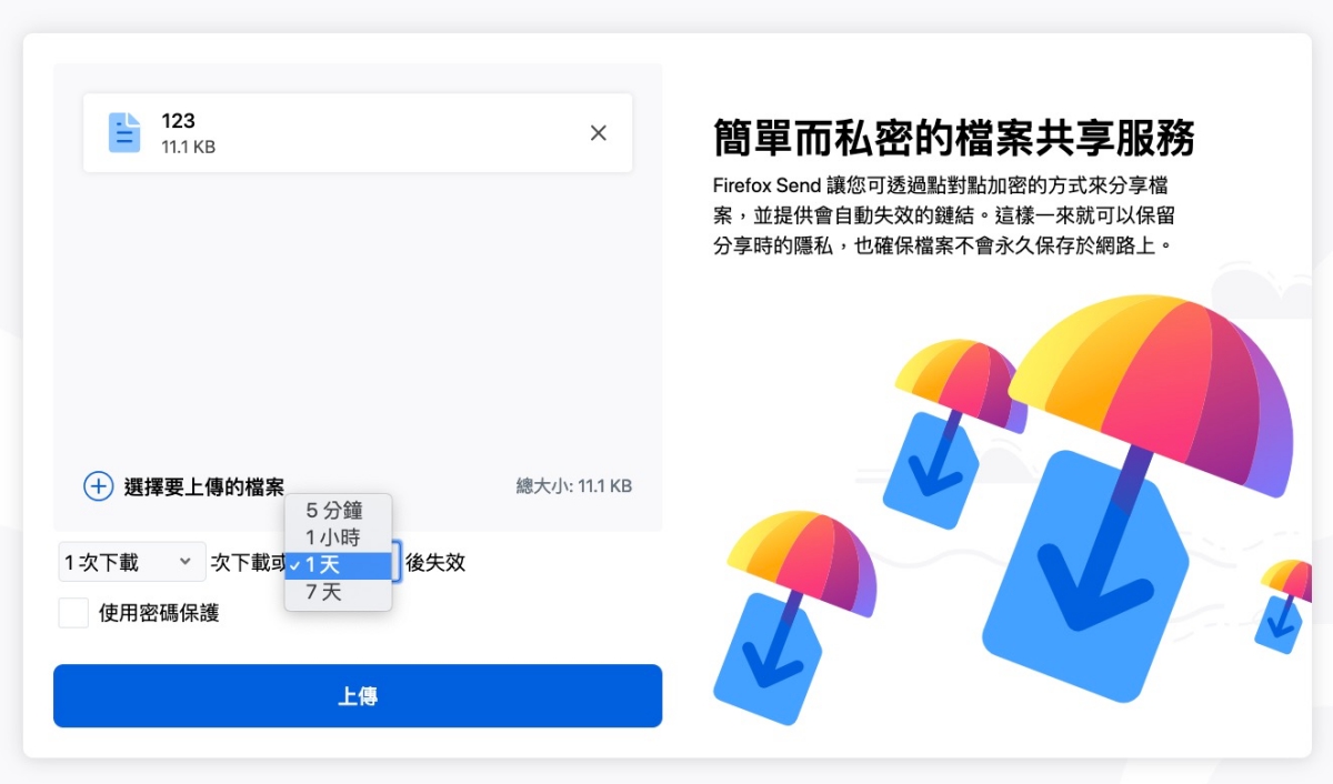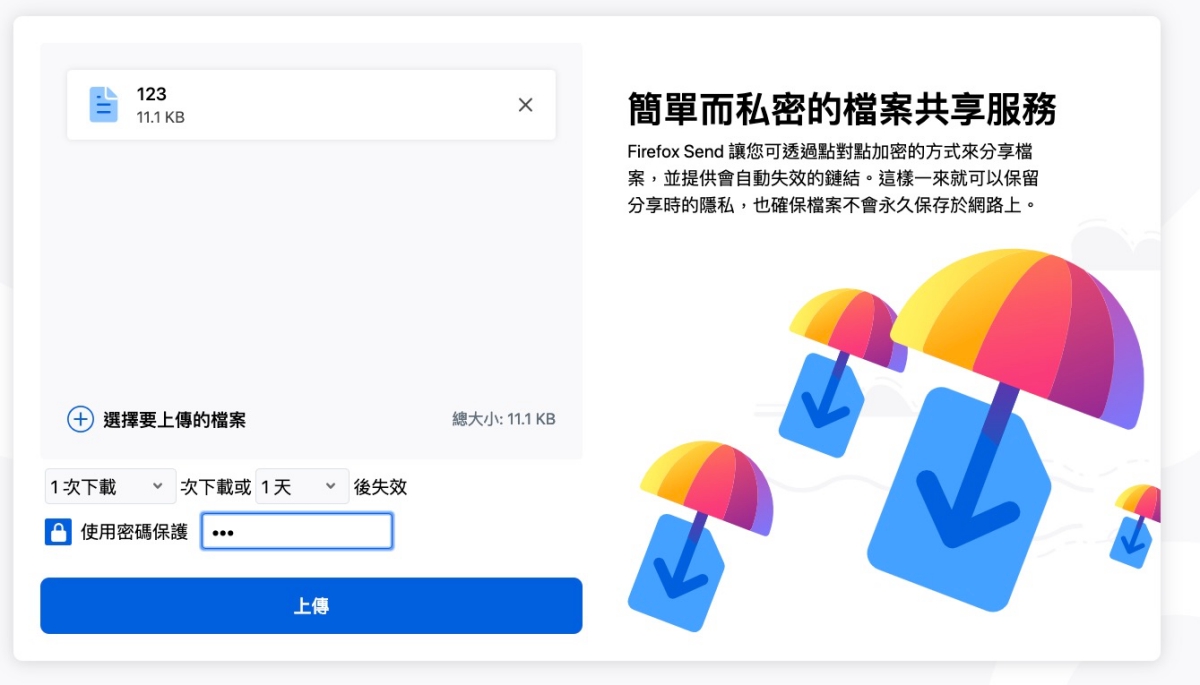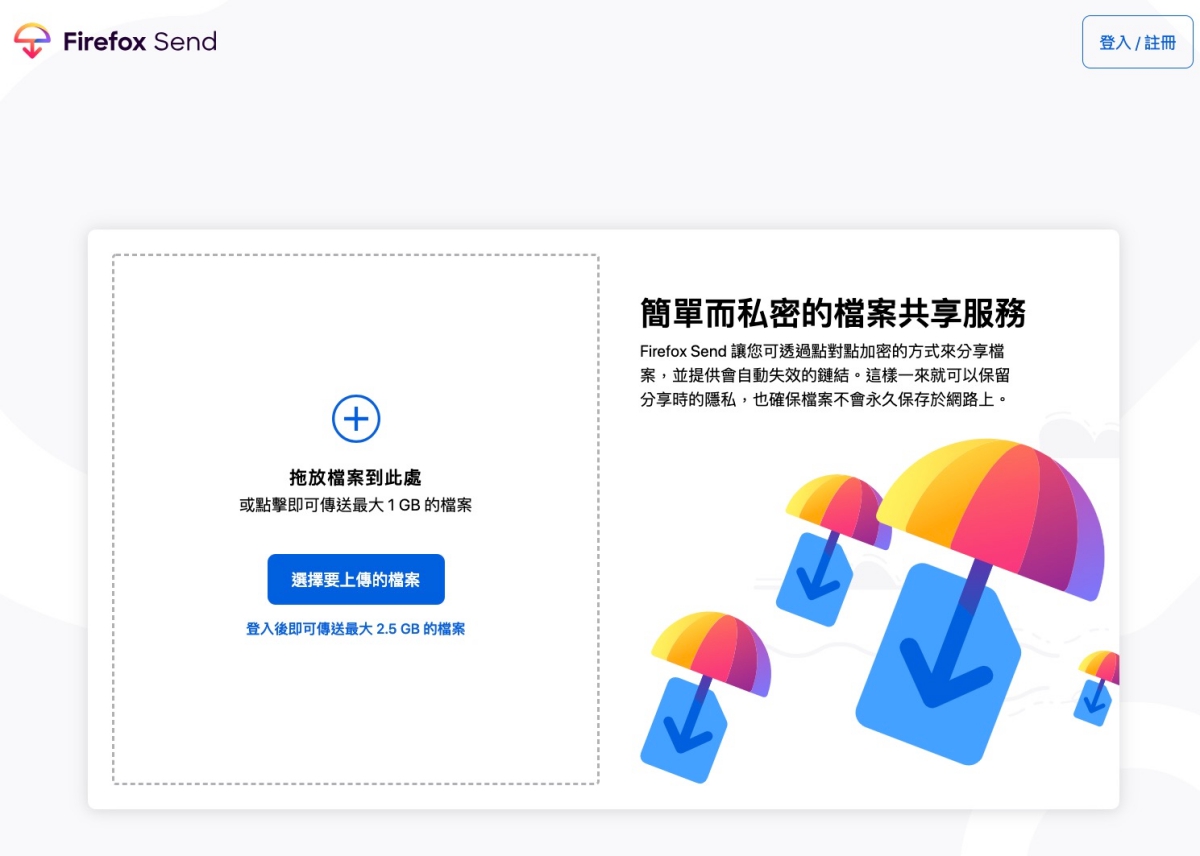 阿湯平常分享檔案給朋友都會用 Google Drive 或者從自己家裡的 NAS 直接分享,但缺點是每次分享完總會忘記關閉權限,因為不知道朋友什麼時候會下載完畢,要是連結一不小心外漏的話就等於算是半公開了,所以阿湯今天來分享一個新的檔案分享服務叫做 Firefox Send,顧名思義就是由 Firefox 這知名瀏覽器同一家公司所開發提供的,不需註冊的情況下就能上傳 1GB 的檔案,註冊登入使用則可以上傳最大 2.5GB 的檔案,登入後還能設定下載次數及時效天數,往下來看吧。