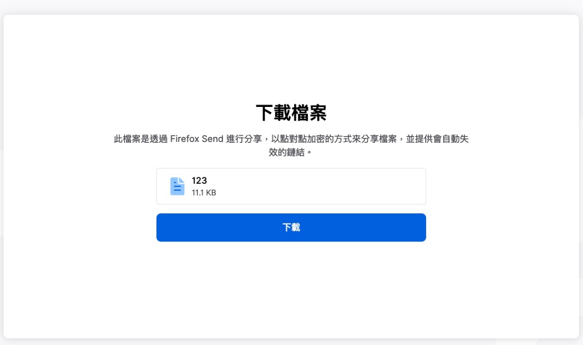 當別人收到連結時會是像這樣,可以直接點擊下載,速度還頗快的,不愧是 Firefox 旗下的服務啊。