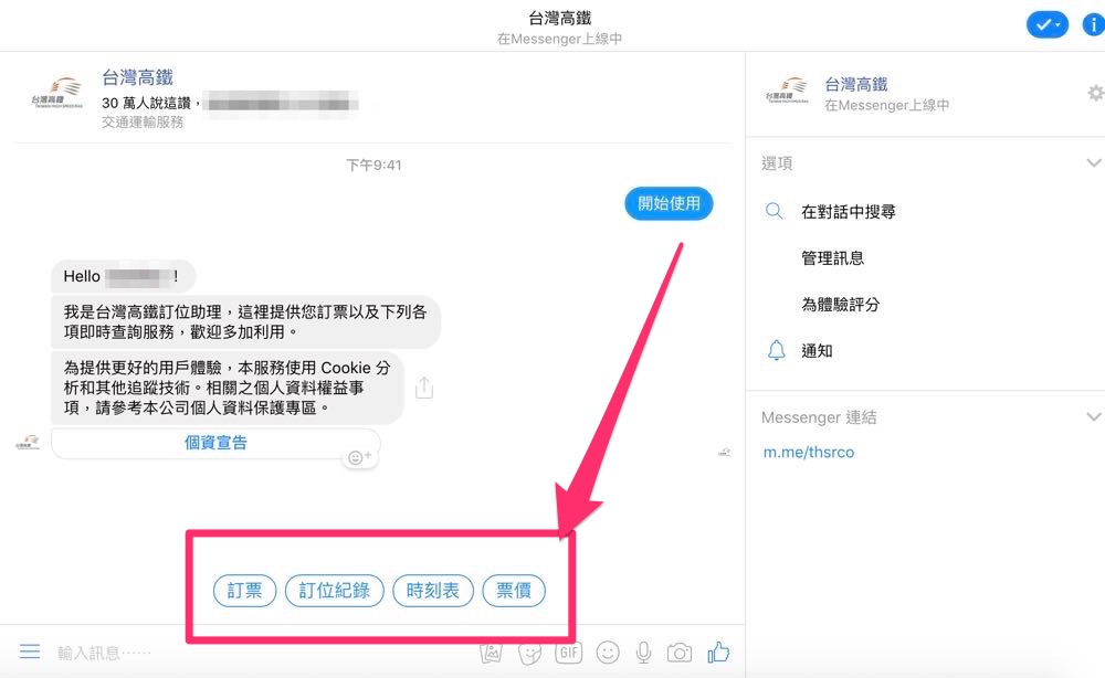 高鐵訂票交給 Facebook Messenger 簡單又輕鬆