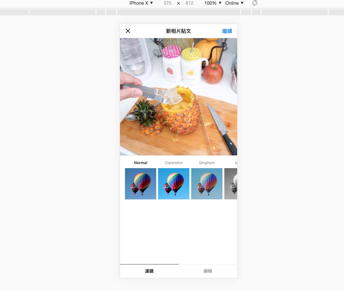 透過這樣方式就可以使用手機版畫面的 IG,像是濾鏡、基本編輯等都是有的,跟我一樣不愛用手機打字的就試看看吧。