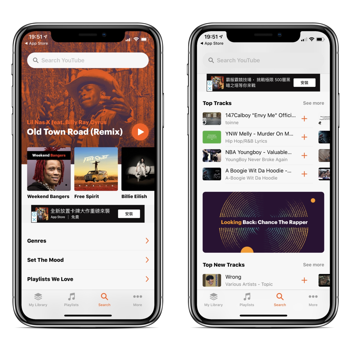 在 APP 的搜尋頁面上,有一些推薦的歌曲,搞的好像是一款音樂串流服務的 APP一樣,雖然看到畫面全都是英文,但不用擔心,中文搜尋是完全沒有問題的。