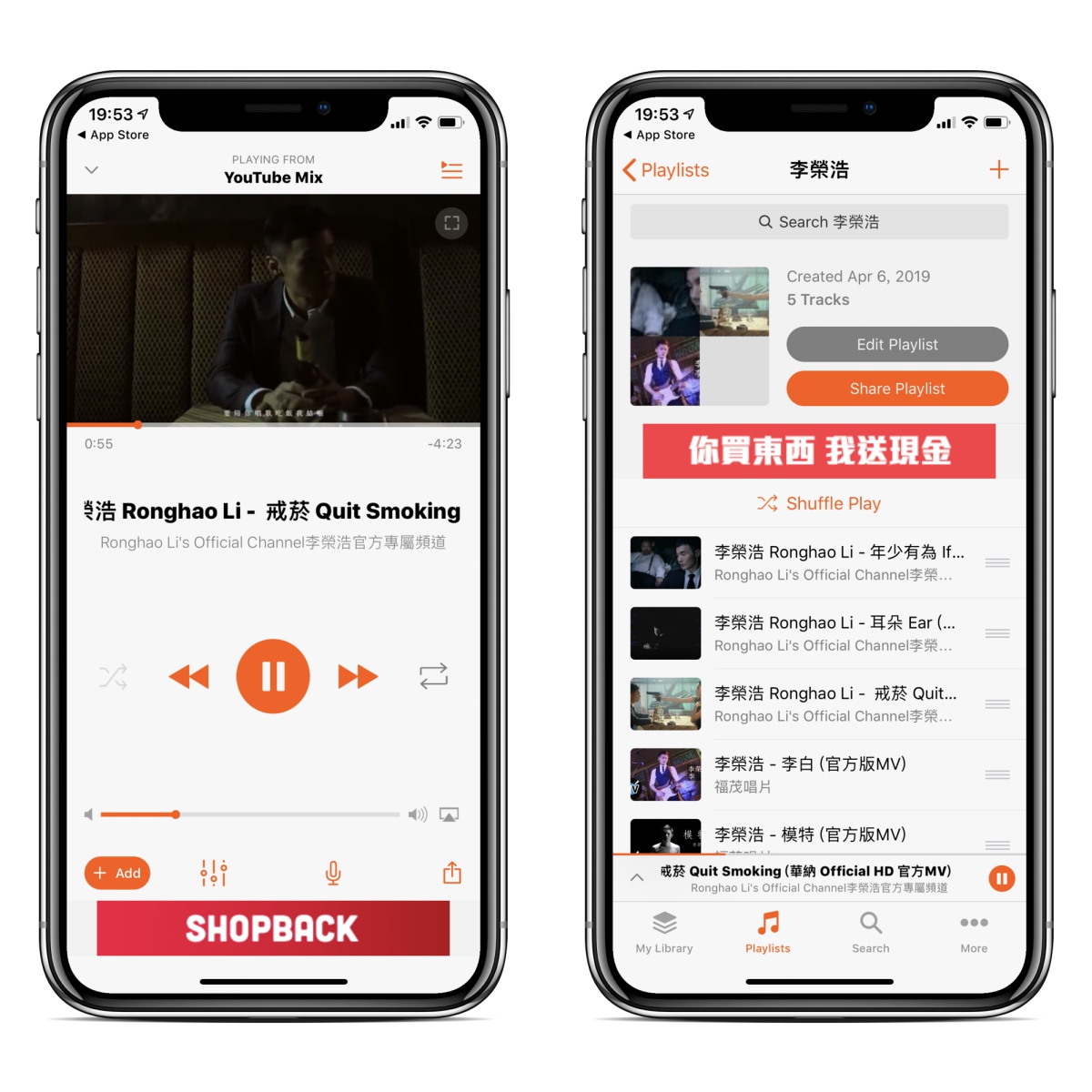 如果只是想單聽一首,也可以直接點擊播放,還可以直接看 MV,播放清單也能直接隨機播放,也能分享給朋友。