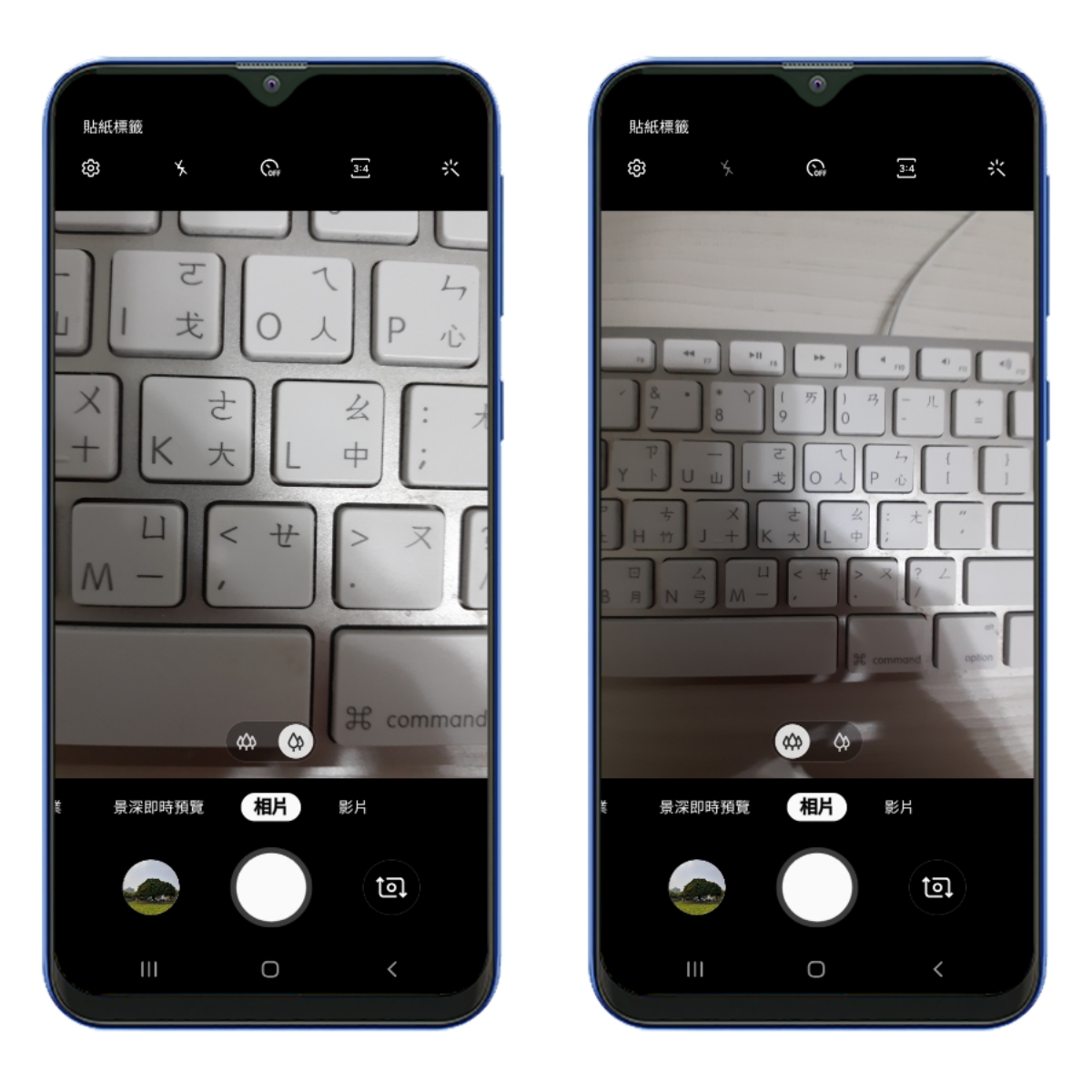 廣角的部份在自動模式下可以切換,先用個鍵盤給大家看一下這廣角的範圍差異有多大。