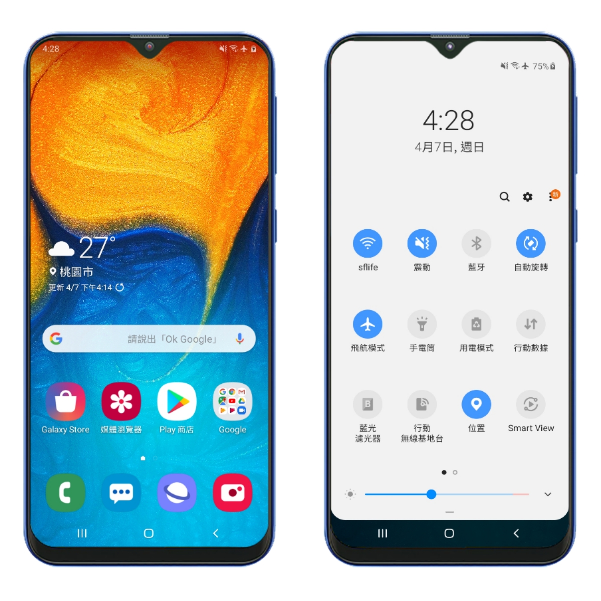 Galaxy A20 及 A30 皆採用 Android 9.0 作業系統,並搭載簡潔好操作的 One UI 介面,雖然是平價入門級的智慧型手機,但操作起來還是相當順暢,系統調校遠比硬體規格來的重要。