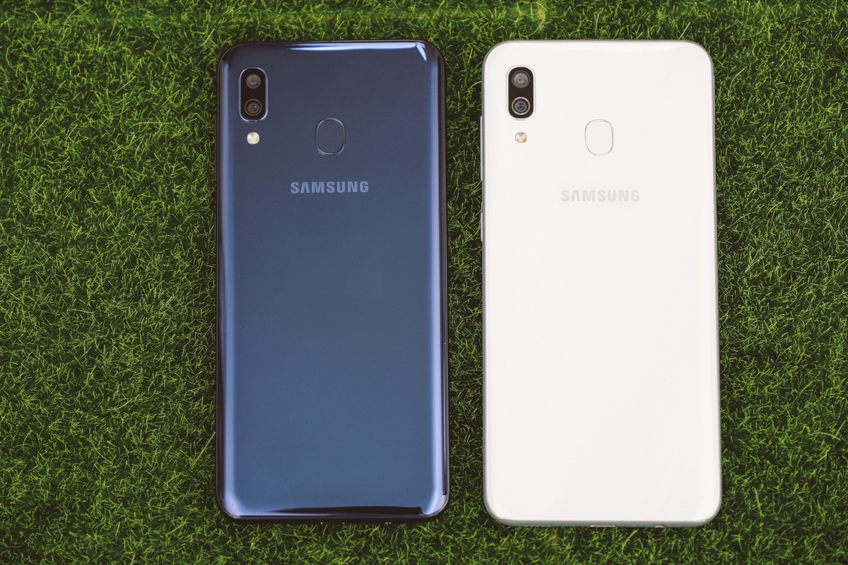 Galaxy A30(右)的主鏡頭為 1600 萬像素/光圈 F1.7 + 123 度超大廣角 500 萬像素/光圈 F2.2。