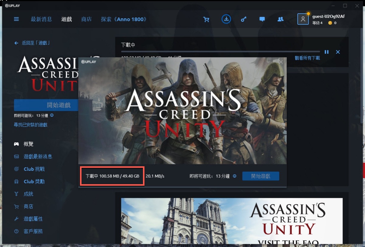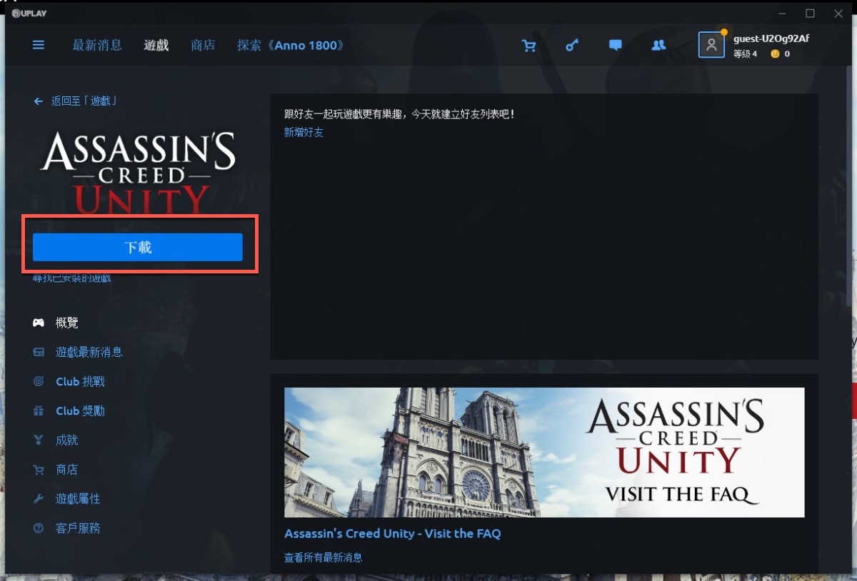 只要透過上面的活動網頁登入 Uplay 的帳號後就取得遊戲完成了,如果你緊接著就想玩可以直接下載 Uplay。