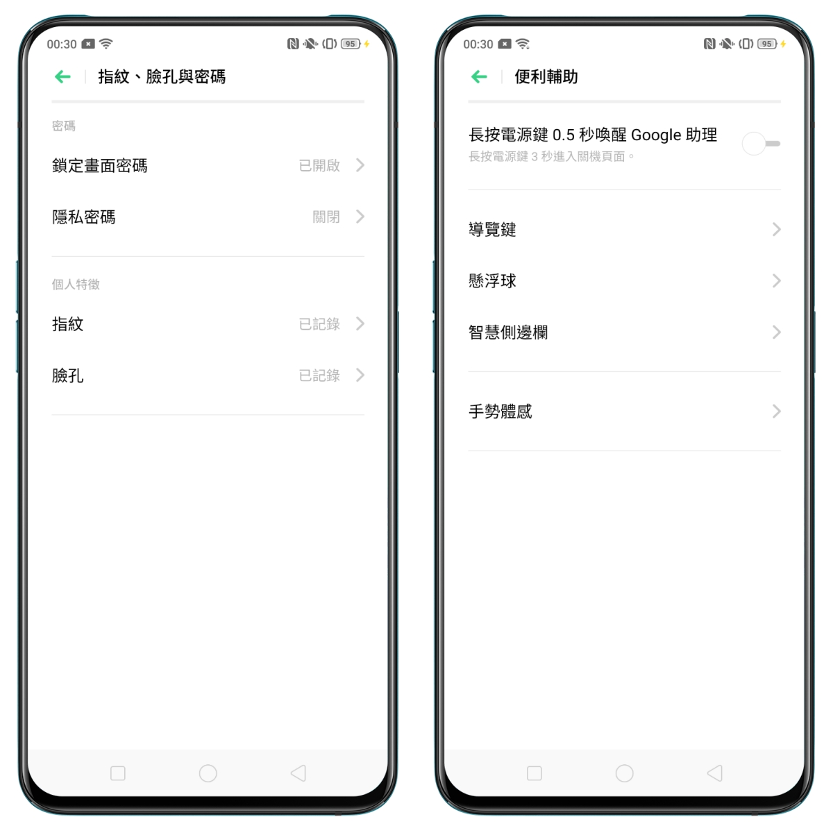 安全性的部份支援指紋辨識以及臉孔辨識,像阿湯很常使用 Google 助理來查詢資料,這個長按電源鍵 0.5 秒喚醒 Google 助理的快捷功能對我來說就非常的重要。