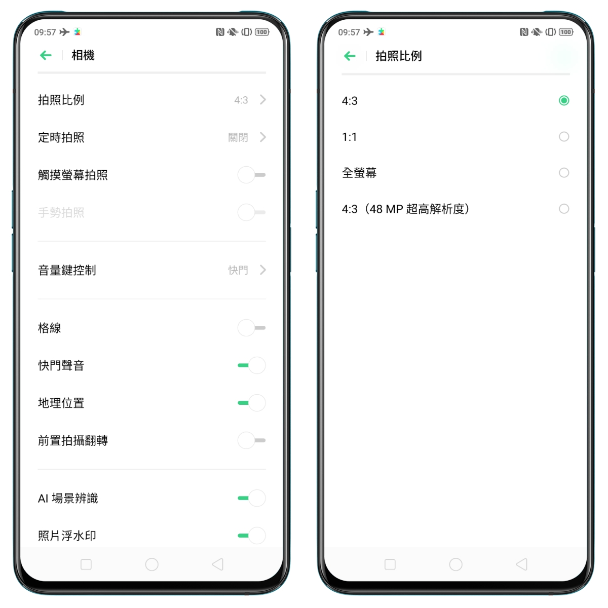 主鏡頭搭載的 4800 萬像素鏡頭,如果想要或有需要拍攝超高解析度照片,可以在拍照比例裡設定為 4:3(48MP 超高解析度)。