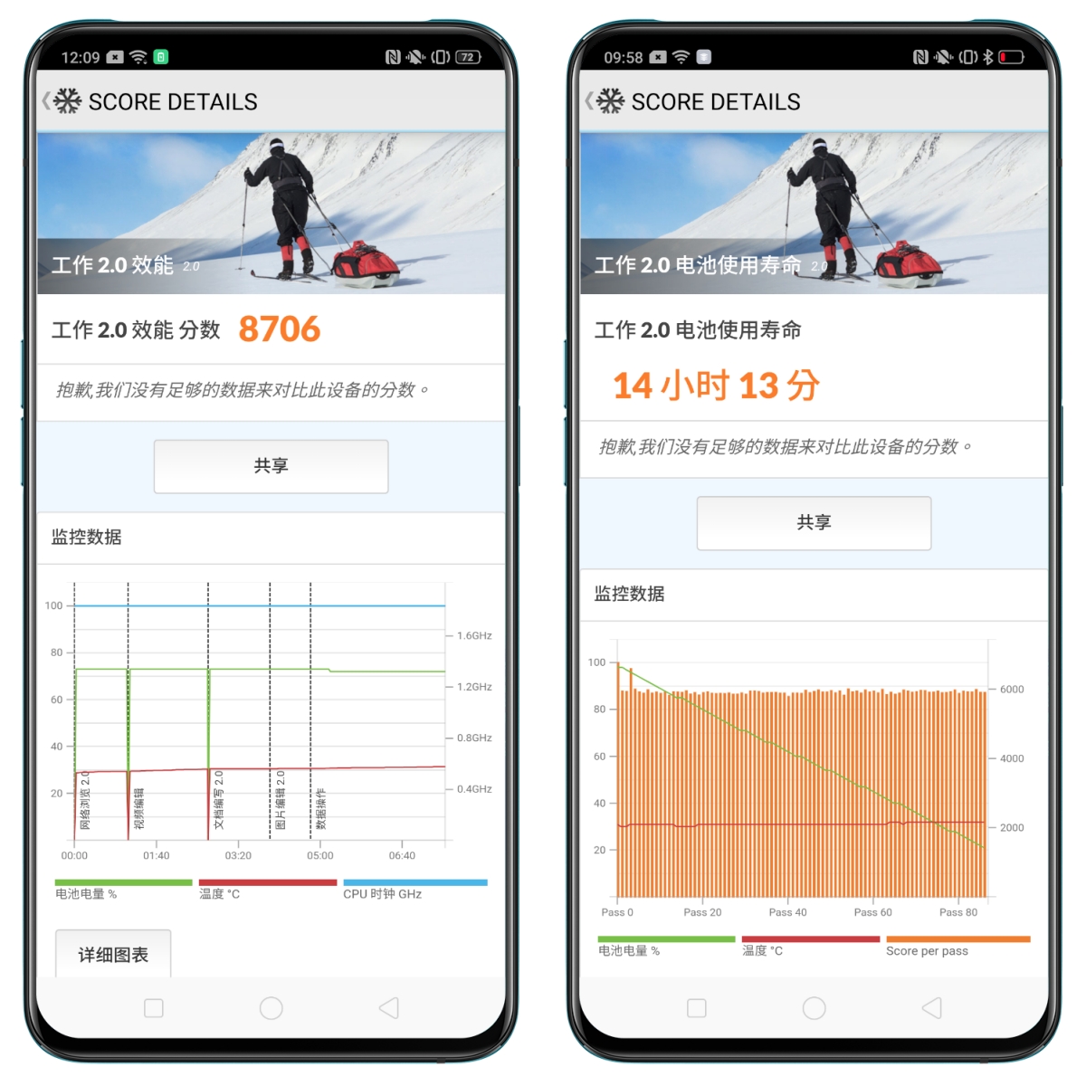 透過 PCMark 工作 2.0 效能分數為 8,706,另外在續航測試的部份獲得很不錯的結果 14 小時 13 分,如果你不是相當重度的使用者的話,理論上應該是二天才需要充一次電,就算使用是較頻繁,應該一整天的使用也是沒問題的(覺得行動電源的需求愈來愈少)。