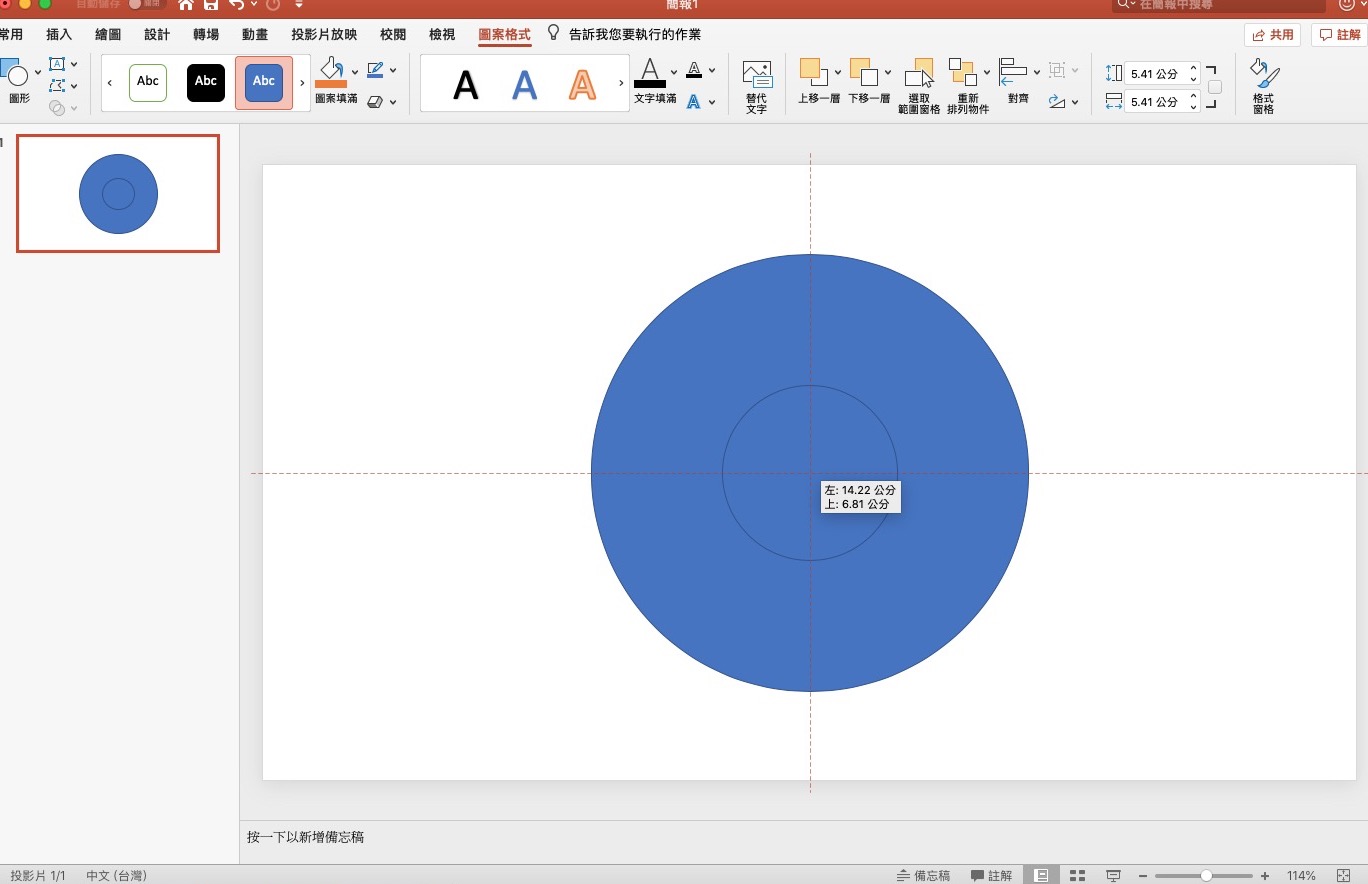 二個圓務必在十字中心線上(拉動有對準就會出現)。