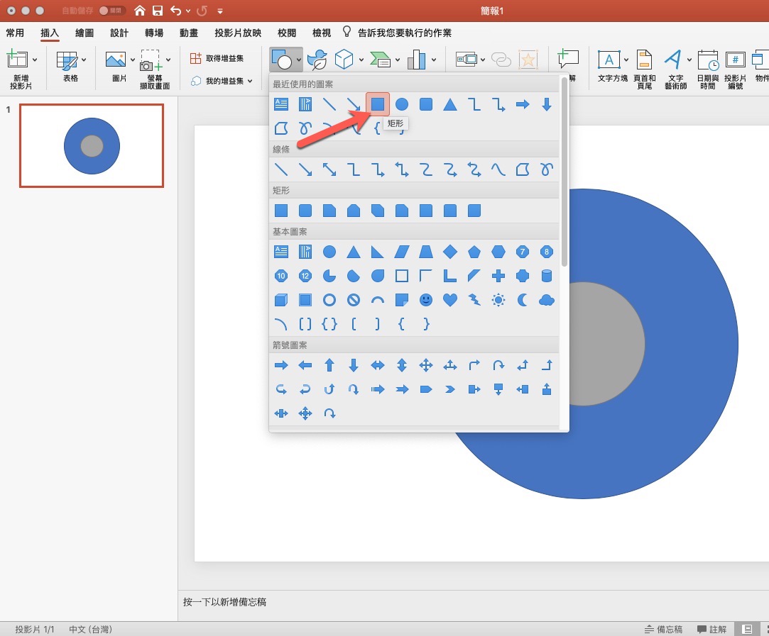 因為阿湯的範例是做均等分割的扇形,我們來插入一個矩形。