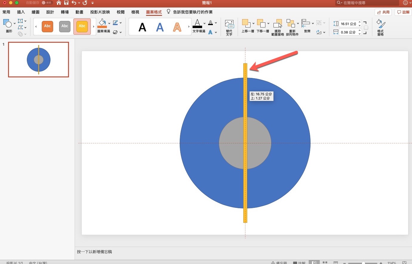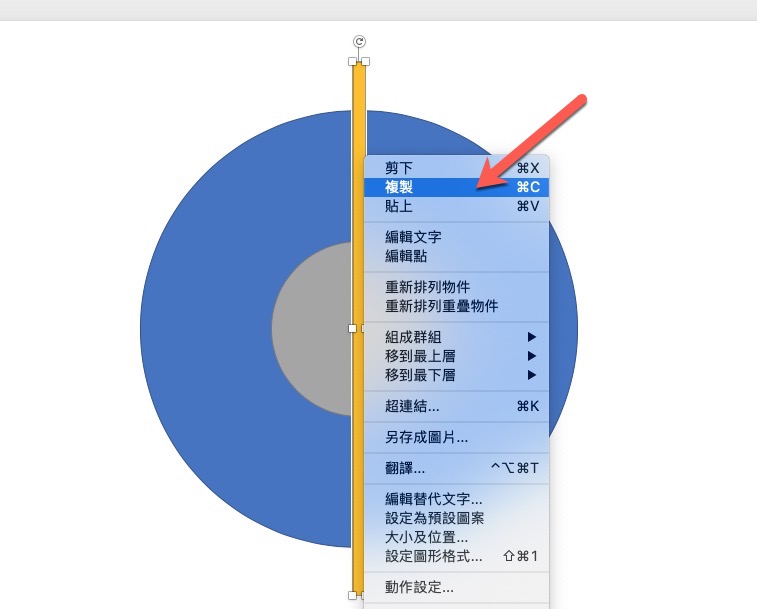 接下來複製你剛剛插入的柱狀矩形,然後貼上後再拉到和原本的矩形重疊。