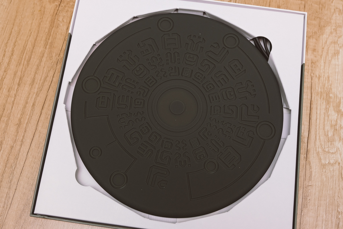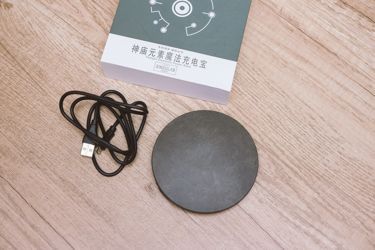 先來看一下無線充電板的部份,內含配件很簡單就是一塊神廟元素的魔法無線充電板,還有一條電源線。