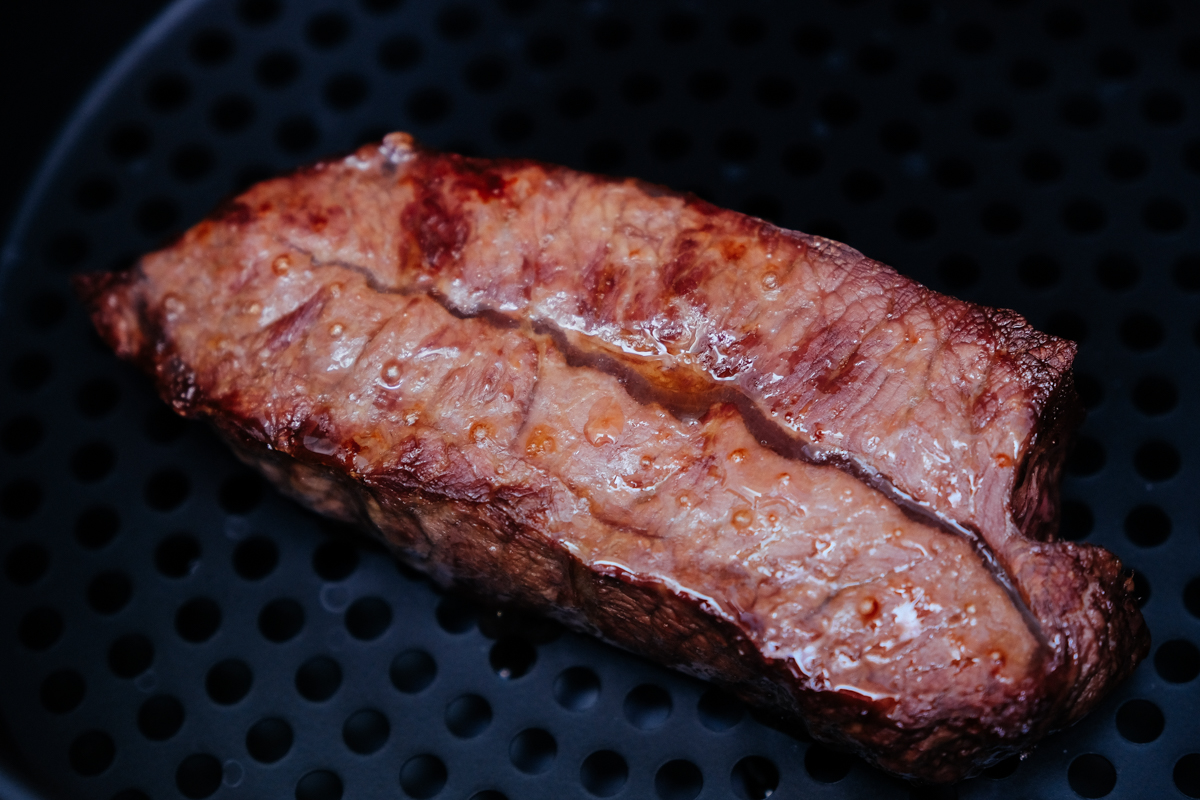 接下來就是簡單的幾道料理介紹,首先是簡單的牛排,就像標題所講的,牛排只要 12 分鐘,什麼都不用做,只要將買來的牛排丟進去(如果你有冷凍過,請確認完全解凍),然後選擇牛肉模式,預設會是 12 分鐘搞定,如果你想再生一點可以再調整溫度。