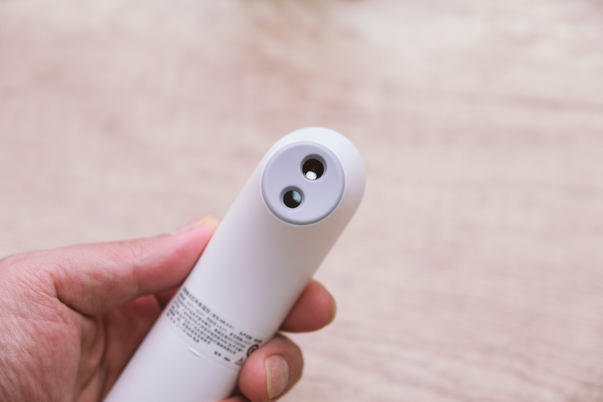 其實有了湯包之後,認真來說除了必要性的產品之外,我們幾乎沒額隨便添購其他相關嬰幼商品,而這次我想分享的是有關於「量體溫」這件事,時有所聞的大概聽過嫩嬰在六個月內很少會有發燒感冒等病症(如果有普遍是被感染),等到進到托嬰中心或是接觸更多人群時,就較有機會發生,所以阿湯也事前先準備好一款不用接觸身體的米家 iHealth 紅外線體溫計,只要在眉心前 3 公分按一下就能獲得精準的體溫值(算是啦),這麼一來就不會吵醒嫩嬰睡覺,隨時可以安心的量體溫。