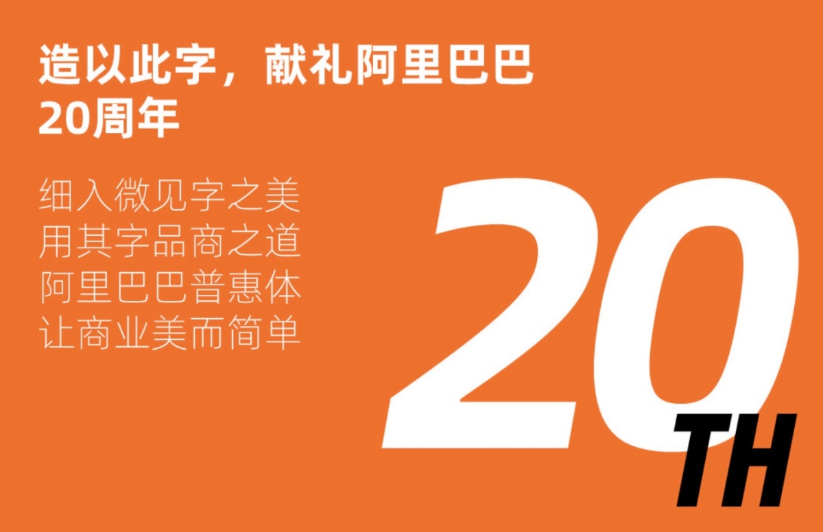 看了一下,會釋出這個字型大概有二種原因,第一個是慶祝阿里巴巴 20 週年,另一個原因是讓阿里巴巴上的商家可以使用吧(避免做出醜內容)。