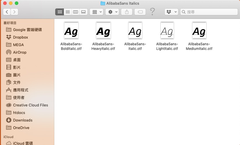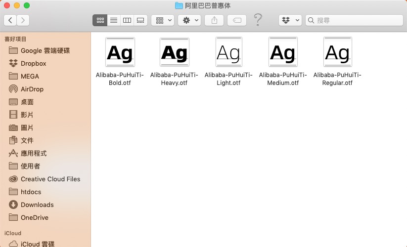 下載會有中文跟英文字體,中文的部份是普惠體,共有五種字重,可以分別安裝。