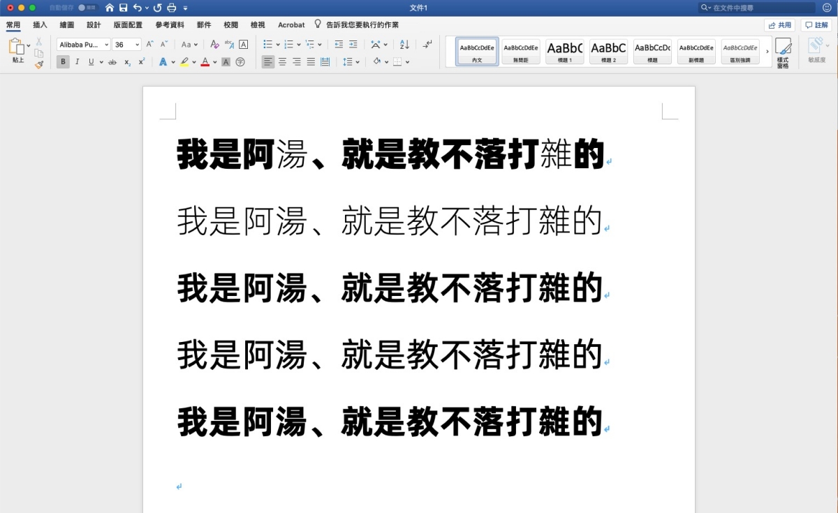 阿湯也立刻試了一下繁體中文的部份,除了字重「中黑 Heavy」這一個有些文字不支援繁體之外,其他四種字重基本上是全支援,我試著貼了很多不同的常用中文字測試,只有 Heavy 有缺字,其他 OK。