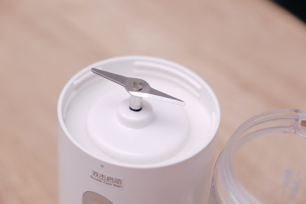 這跟大家常看到的輕型果汁機是差不多的,上面就是杯子,只是他是直接就是杯子,沒有額外再加蓋子。
