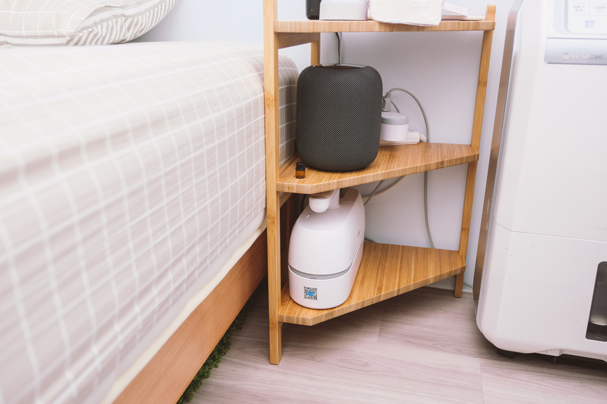 收納空間不需要很大,像阿湯就只是收在床邊三角櫃的下方,幾乎不佔用什麼空間。