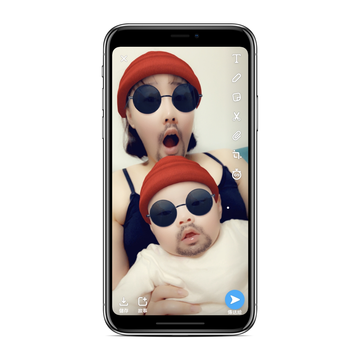 拍照後可以傳給同樣是 Snapchat 的好友、編輯一些文字等內容或者儲存後上傳分享到 FB 都是沒問題的,這款 APP 真的神簡單,阿湯就不用再多介紹了,快去玩吧。
