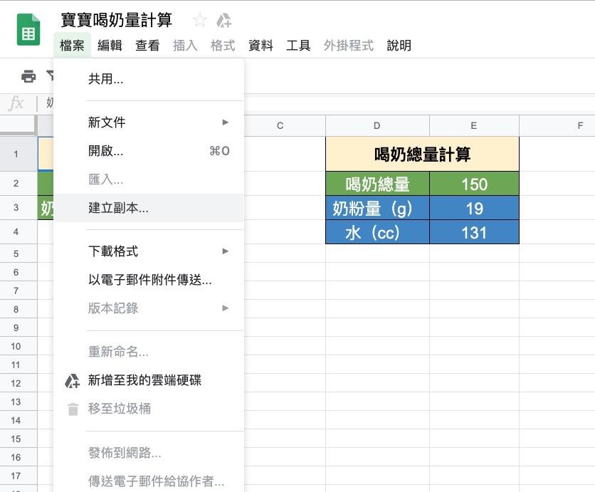阿湯是用 Google 試算表做的,如果你想要使用的話,請不要跟我要共用授權,登入你的 Google 帳號後,就可以從檔案裡「建立副本」,那麼你的 Google 雲端硬碟裡就會有一份可以編輯的來使用了。