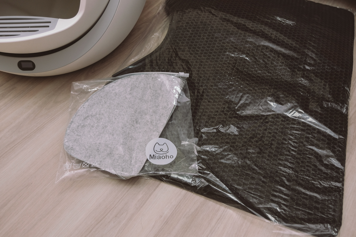 現在新的是有門簾版本,不過我沒有想用,因為這肯定會被我家的貓破壞掉啊,另外還有送一個雙層落砂墊,就是當砂落在裡頭時,你只要拿起來將中間弄開就可以把落砂再倒回去使用,算是方便,不過附的落砂墊品質一般般。