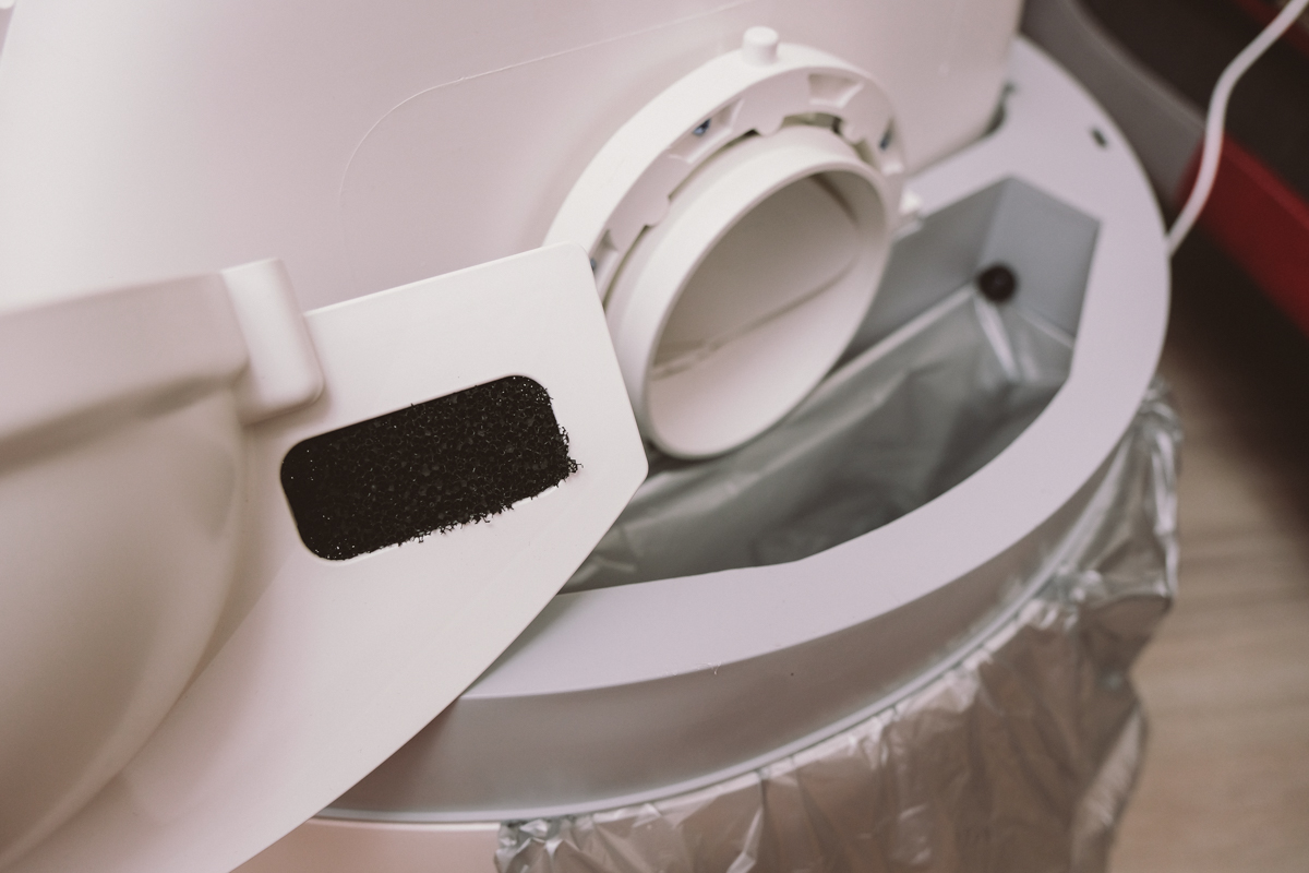 在垃圾桶的上方還有基本的活性碳濾網阻隔,可以避免屎尿味四散。