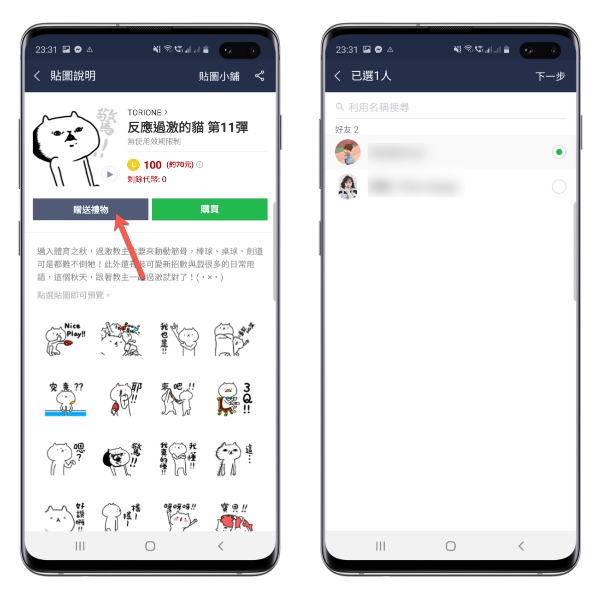 然後點擊贈送禮物(不會真的送出去,不用擔心),選擇想確認的對象後按下一步。