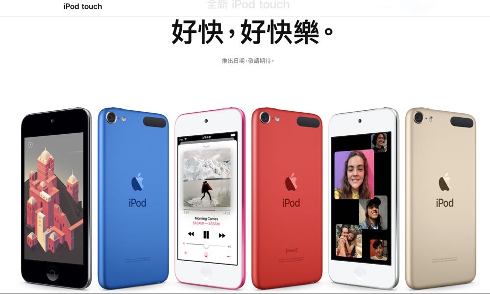 全新 iPod touch 共有粉紅色、銀色、太空灰、金色、藍色以及 (PRODUCT) RED 紅色六色和 32GB / 128GB / 256GB 三種容量選擇,但目前僅在官網亮相,上市日期未定。