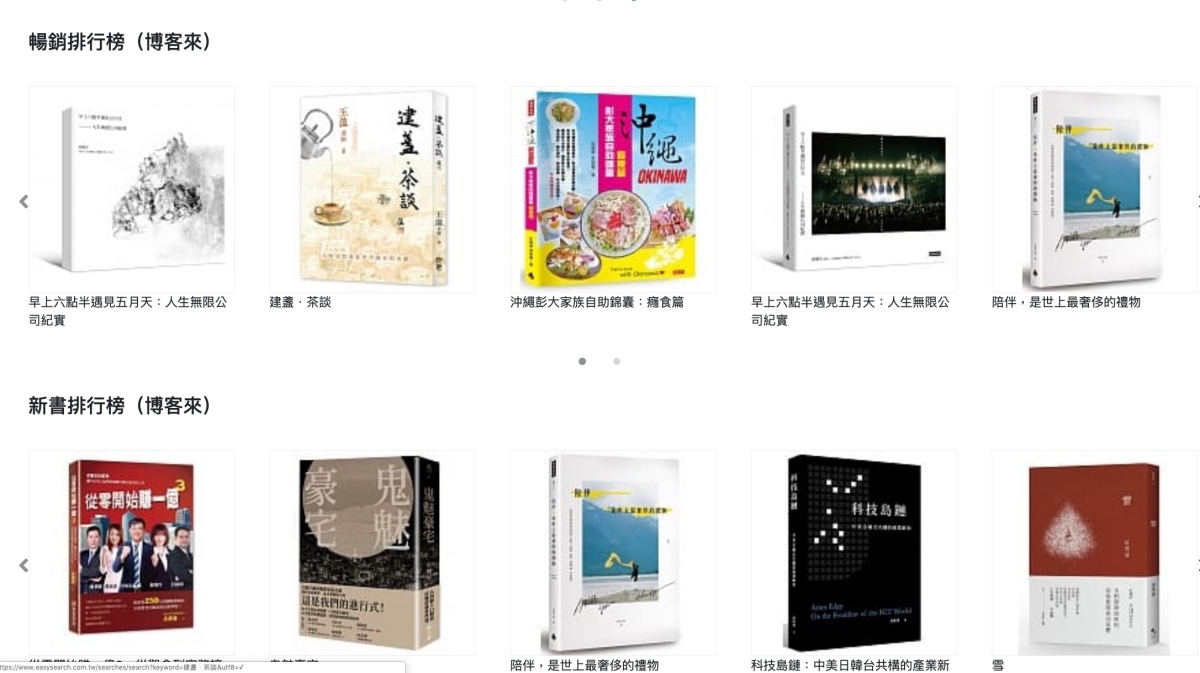 在首頁下方也會有博客來目前的暢銷及新書排行榜給你參考。
