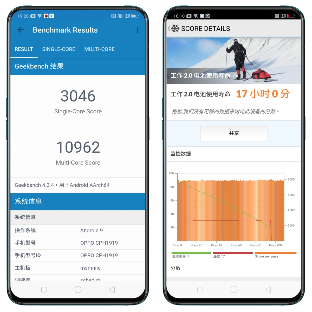 而續航力測試的部份,透過 PCMark 測試獲得長達 17 小時整的續航能力,在阿湯測試的所有手機中,是排名在前三的,這樣的續航能力,在一般使用下,大約是 2 天充一次電就可以了,可以用上 855 處理器再兼顧續航,真的是相當的不容易。