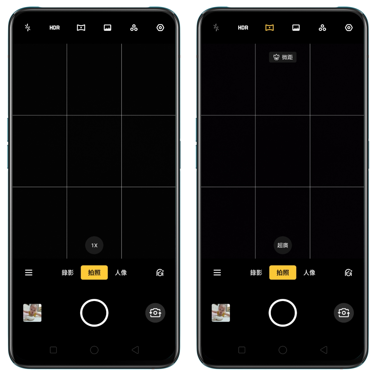 拍攝支援 AI 智慧場景辨識,介面上與標準版基本上一樣,唯一最大的差別是上方多了一個超廣角的切換快捷鍵。