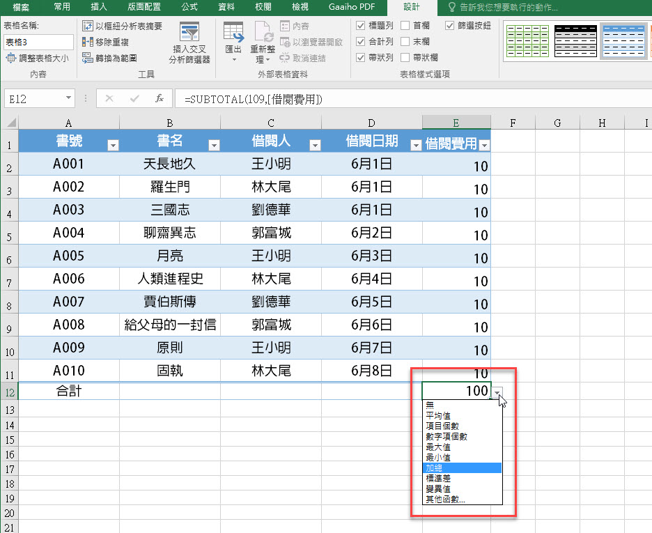 小技巧三:同樣選擇表格任一欄位後,在設計裡,將「合計列」勾選起來,就會看到表格的最下方出現合計欄位,不過這不只是可以做加總。