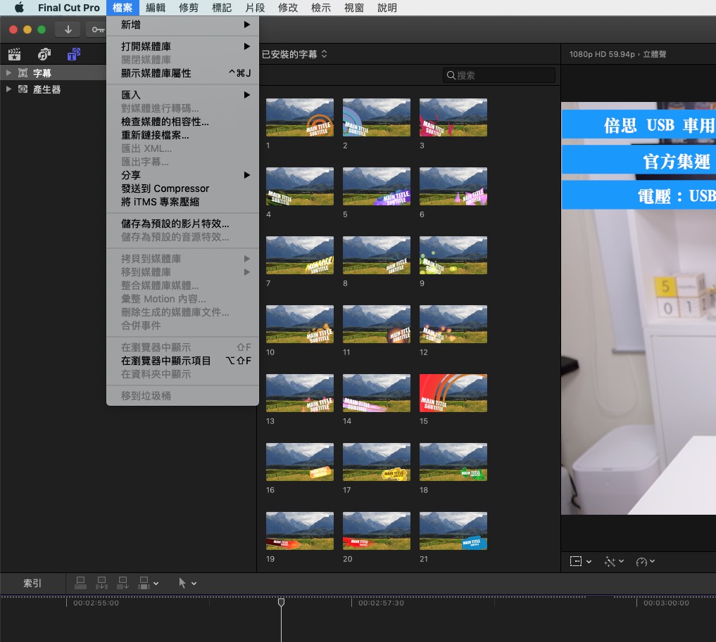 接下來就可以去打開你的 Final Cut Pro 看看,會發現全部都變繁體中文囉。