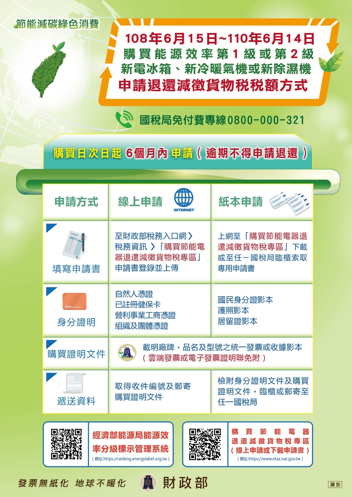 申請需憑購買發票,並於六個月內提出申請(不論網路或書面都是)。